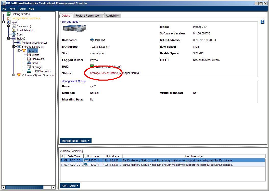 HP Lefthand VSA minimum memory requirements