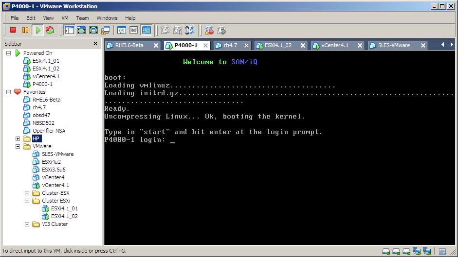 The VSA seemed to start without any problems and from the console everything looked fine.