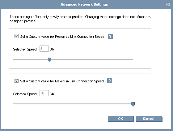 - Set a Custom value for Preferred Link Connection Speed. This value applies to server profiles with a Multiple Networks connection defined and the Port Speed Setting set to Preferred.