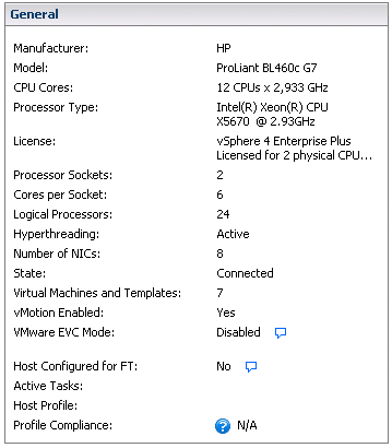 We all know how to look for the basic hardware info of an ESX(i) server, just open the vSphere Client go to Summary tab and you will presented with the familiar summary screen that includes General section with the manufacturer, model, etc.