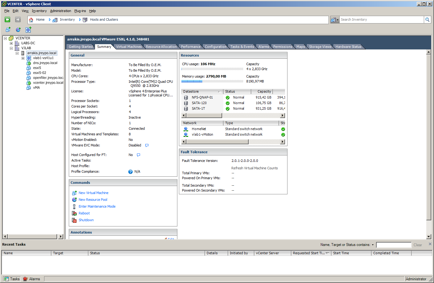 Finally here it is a screenshot of the vSphere Client connected to the vCenter VM and showing the summary of the host.