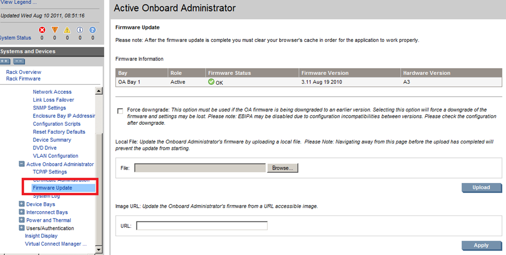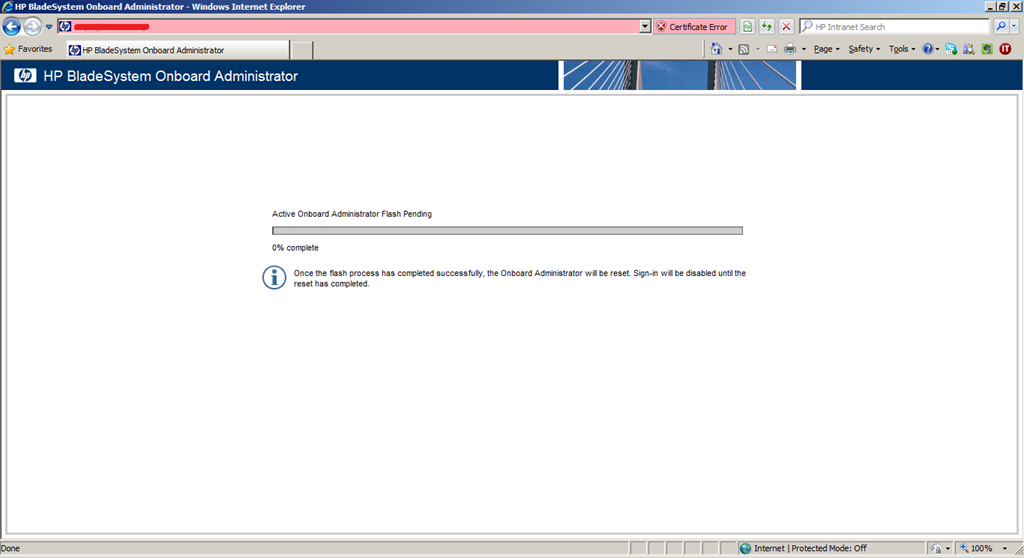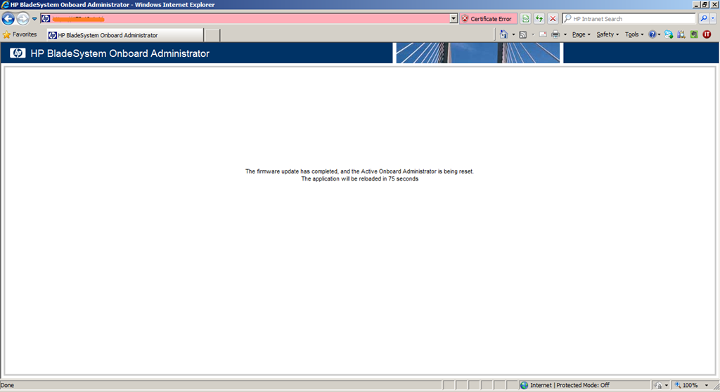 A post mostly for documentation sake on how to upgrade the firmware of the Onboard Administrator of an HP BladeSystem enclosure.