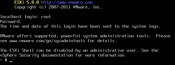Finally and only as a curiosity after the reboot if you login into the ESXi Shell a message indicating that the system has been migrated to ESXi 5.0 will be displayed before the prompt.