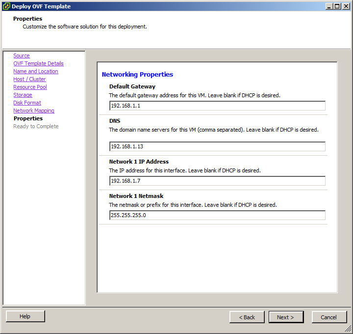The deployment of the vCSA 5.1 is very similar to the previous version. Use the vSphere Client to deploy a new OVF template and browse to the vCSA OVA package, follow the instructions until you get to the Networking Properties screen.