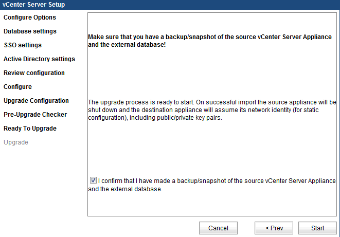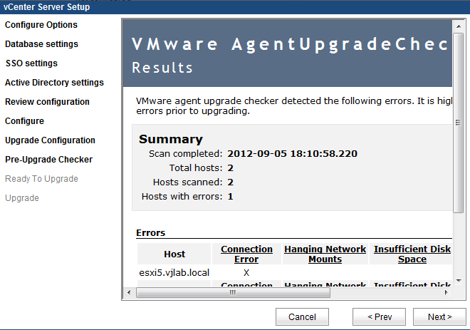 After this a check will be run against the ESX/ESXi managed by the old vCSA and it will generate a report.