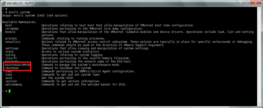 Power and maintenance operations in ESXi 5.1 with esxcli
