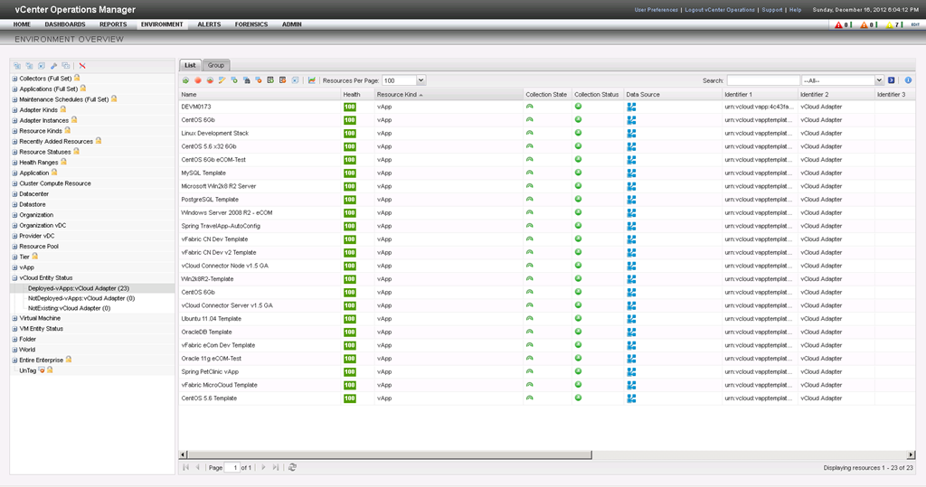 Click OK and the vCloud Adapter should be configured and collecting. To test it go to Environment –> Environment Overview. In the left pane look for vCloud related Resource Kind, select anyone and look for new resources with a vCloud Data Source in the right pane.