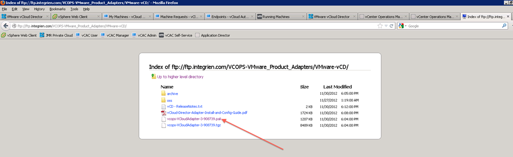 First you need to download the adapter from ftp.integrien.com. Choose the .PAK file.