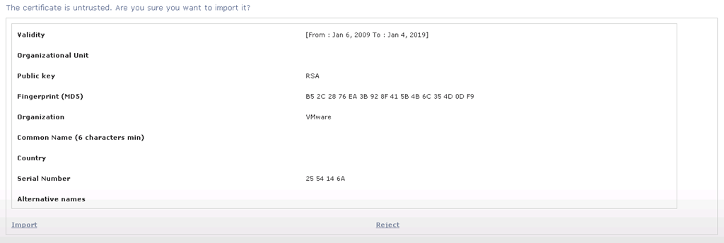 A screen with the details of our Chargeback server will appear, click Import to accept the certificate.