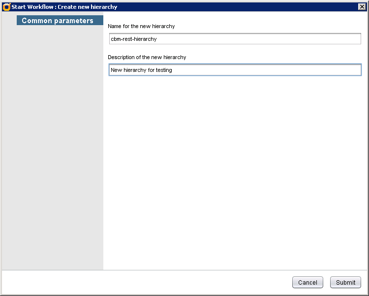 At the presentation layer the parameters will shown as Name of the new hierarchy and Description for the new hierarchy.