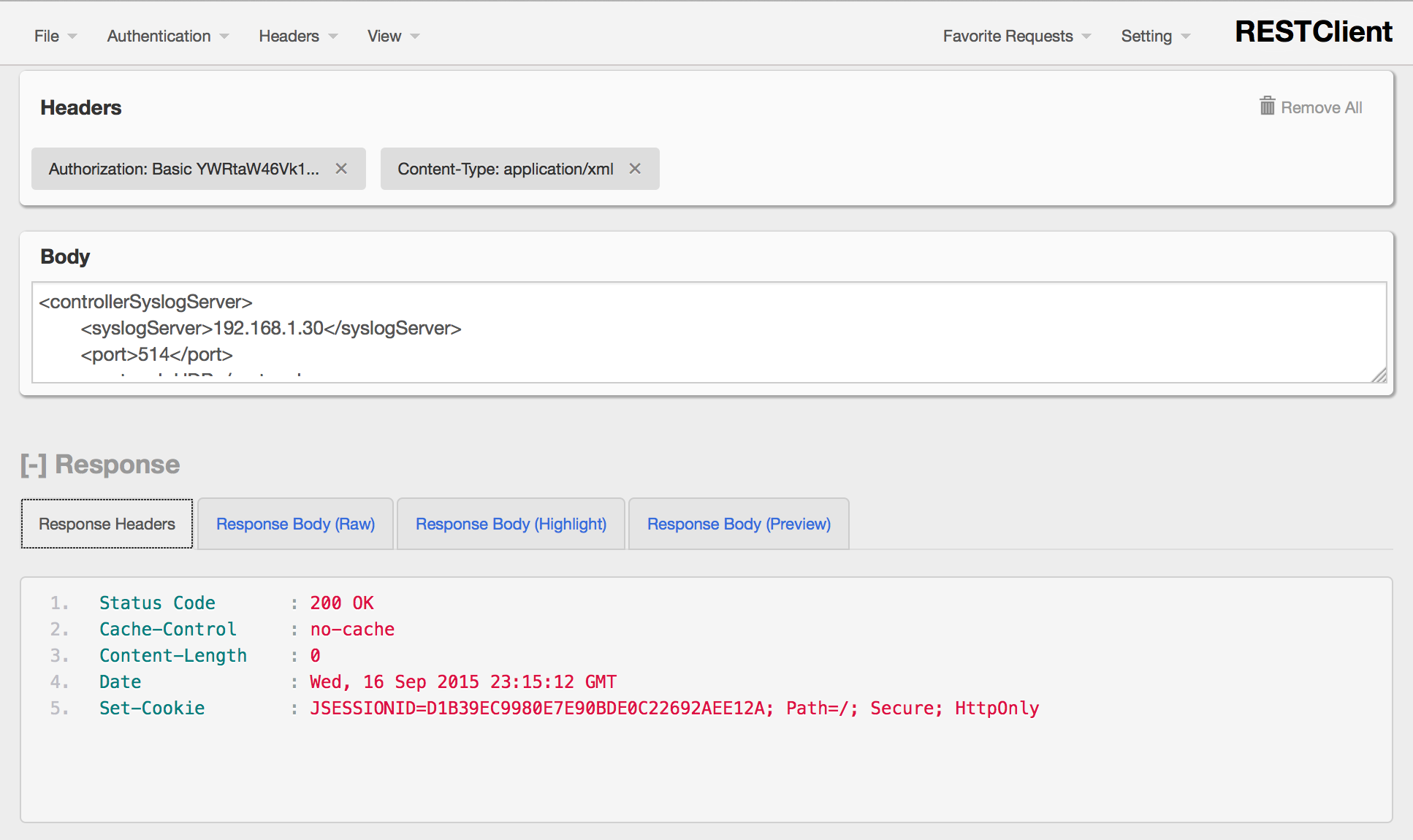 For this post I will use Firefox REST Client Add-on but you can use your favorite REST client. Firstly any REST API call will require at least the Authentication header, in Firefox REST Client click on Authentication drop-down menu, select Basic Authentication and enter the admin credentials.
