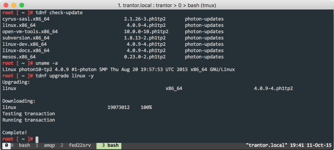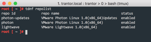 VMware Photon comes with tdnf (Tiny DNF); this is a development by VMware that comes with compatible repository and package management capabilities. Not every dnf command is available but the basic ones are there.