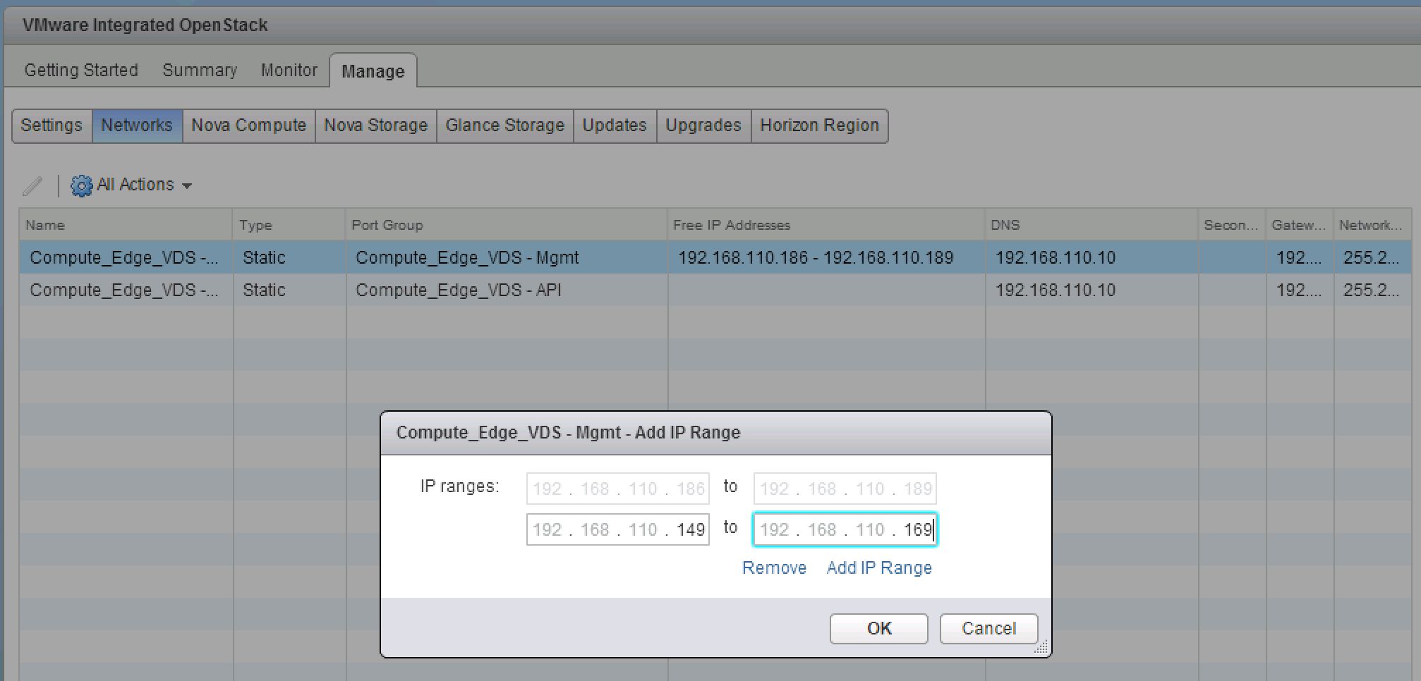 Before starting with the deployment check in the Networks tab that there are enough free IP address for the new deployment, if there aren’t then add a new IP range.