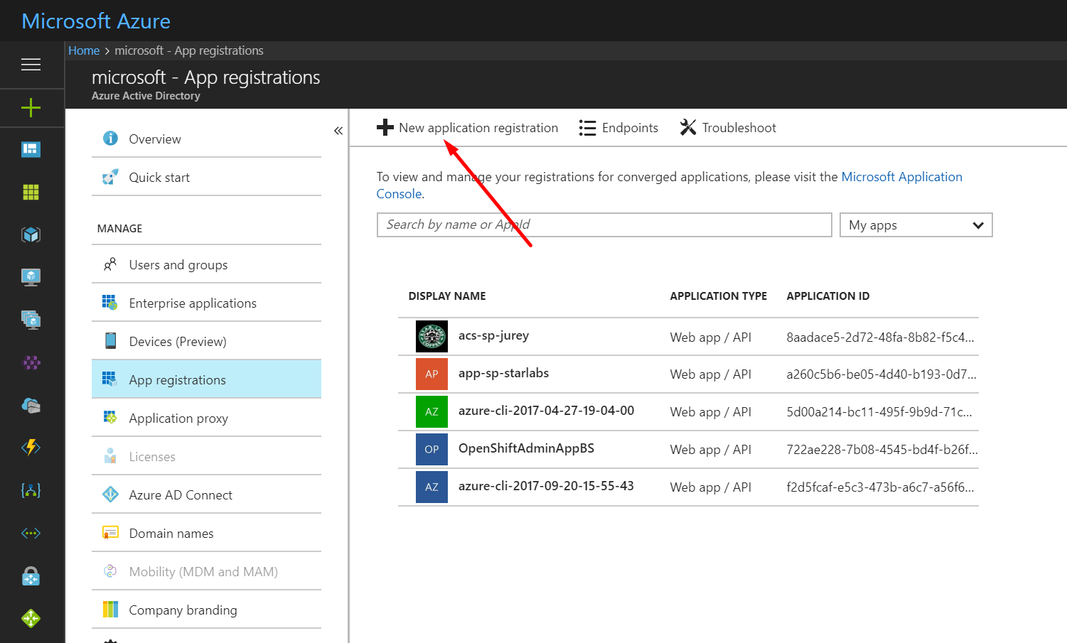 To create the apps in the Azure Portal go to Azure Active Directory -> App registrations and click on New application registration.