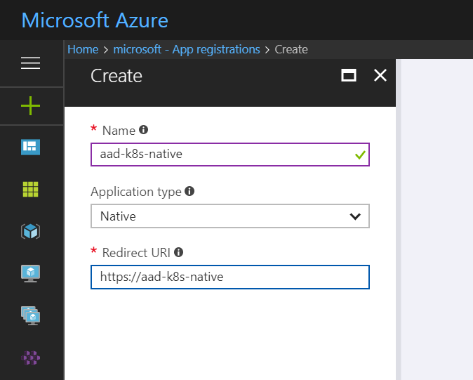 Before deploying the new cluster and for the integration to work we will need to create two Azure Active Directory App Registrations, one as Web App/API and another as Native type. The first one will represent the Server App and the Second the Client App.